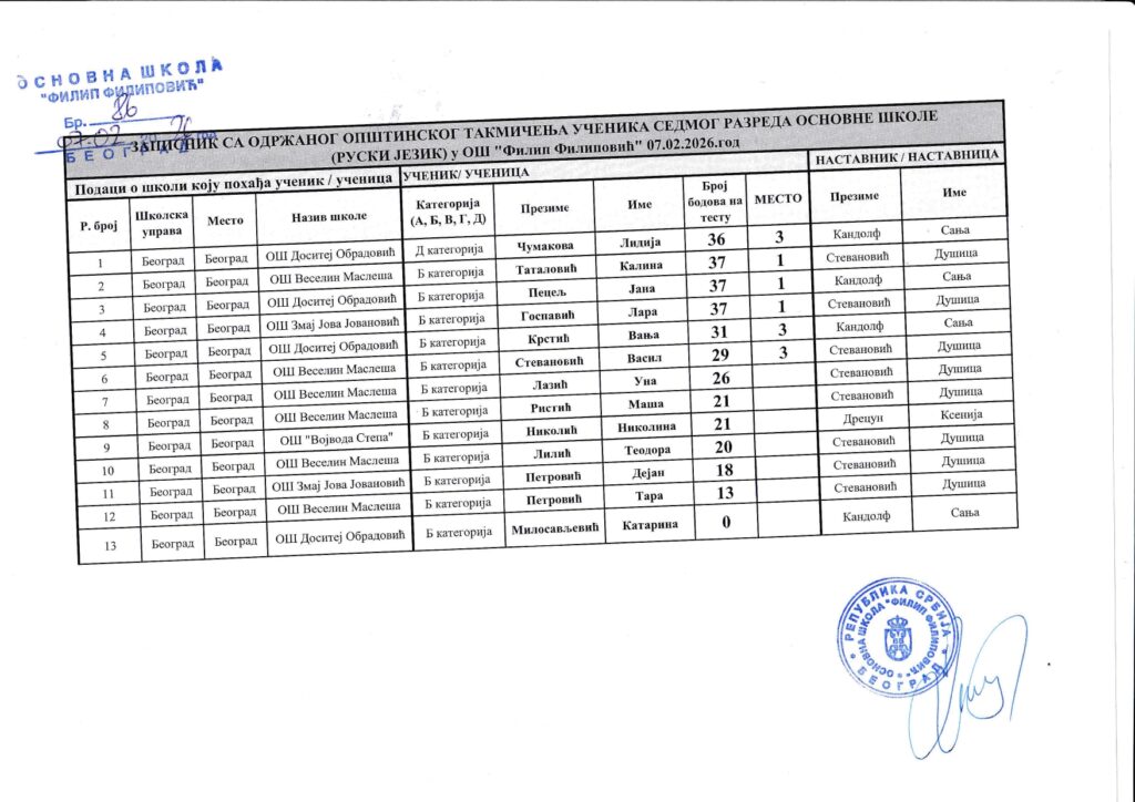 Општинско такмичење ученика – руски језик